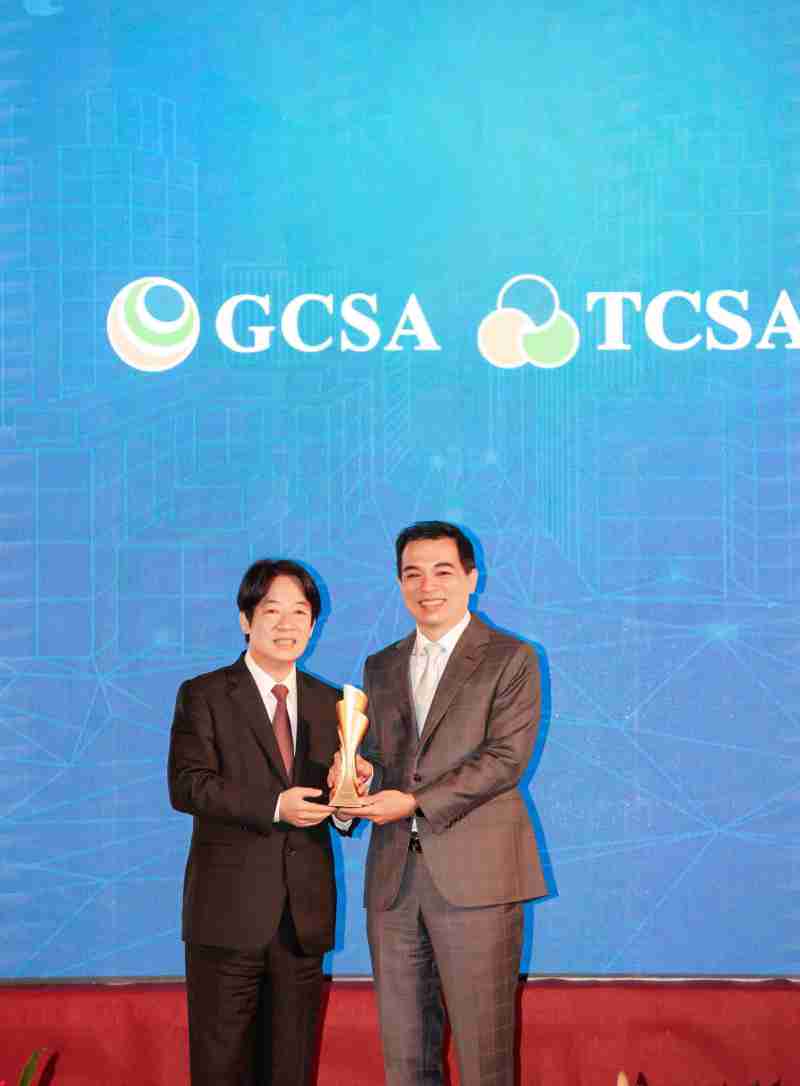 达全方位永续表现获全球永续奖及台湾永续奖肯定,,,由副总统赖清德颁奖 (左),,,,2468BET总经理柯富仁 (右) 代表领奖