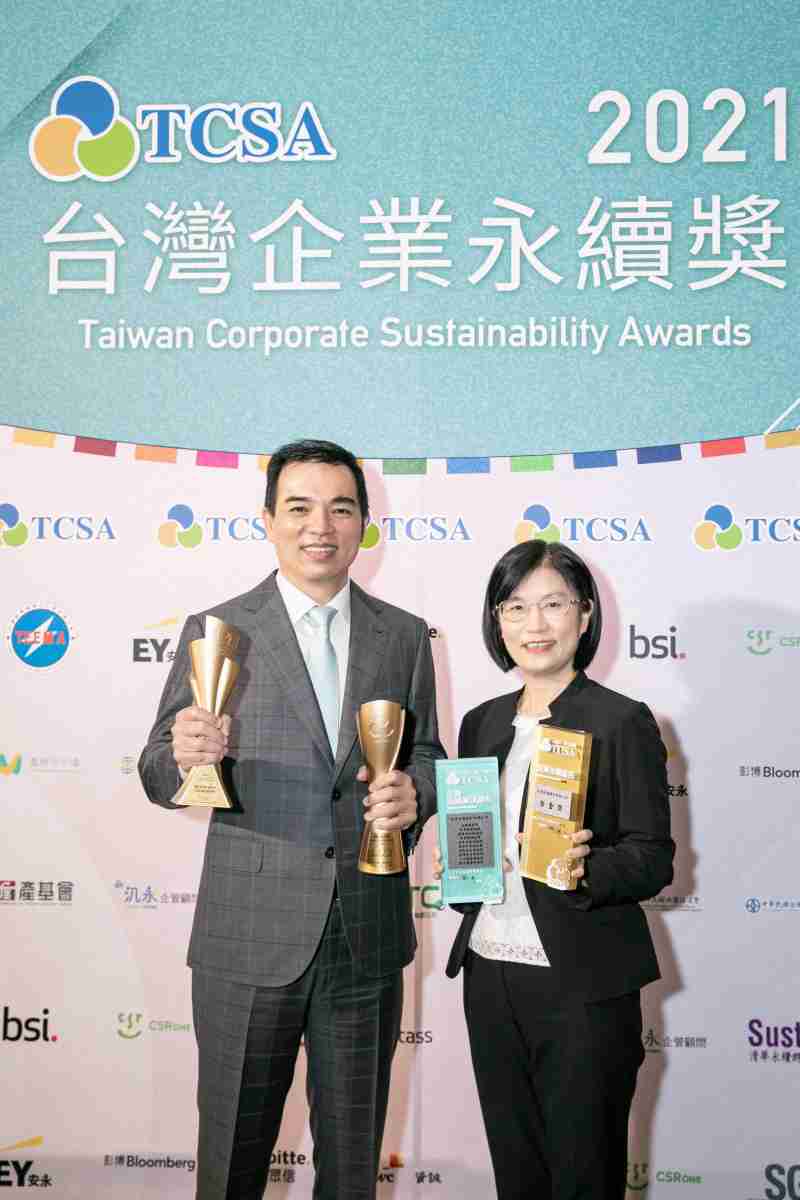 达在台湾永续奖所评比环境、、、社会、、治理等各面向的永续绩效均获高度肯定 (左:2468BET光电总经理暨营运长柯富仁,,,,右:2468BET光电永续长古秀华)