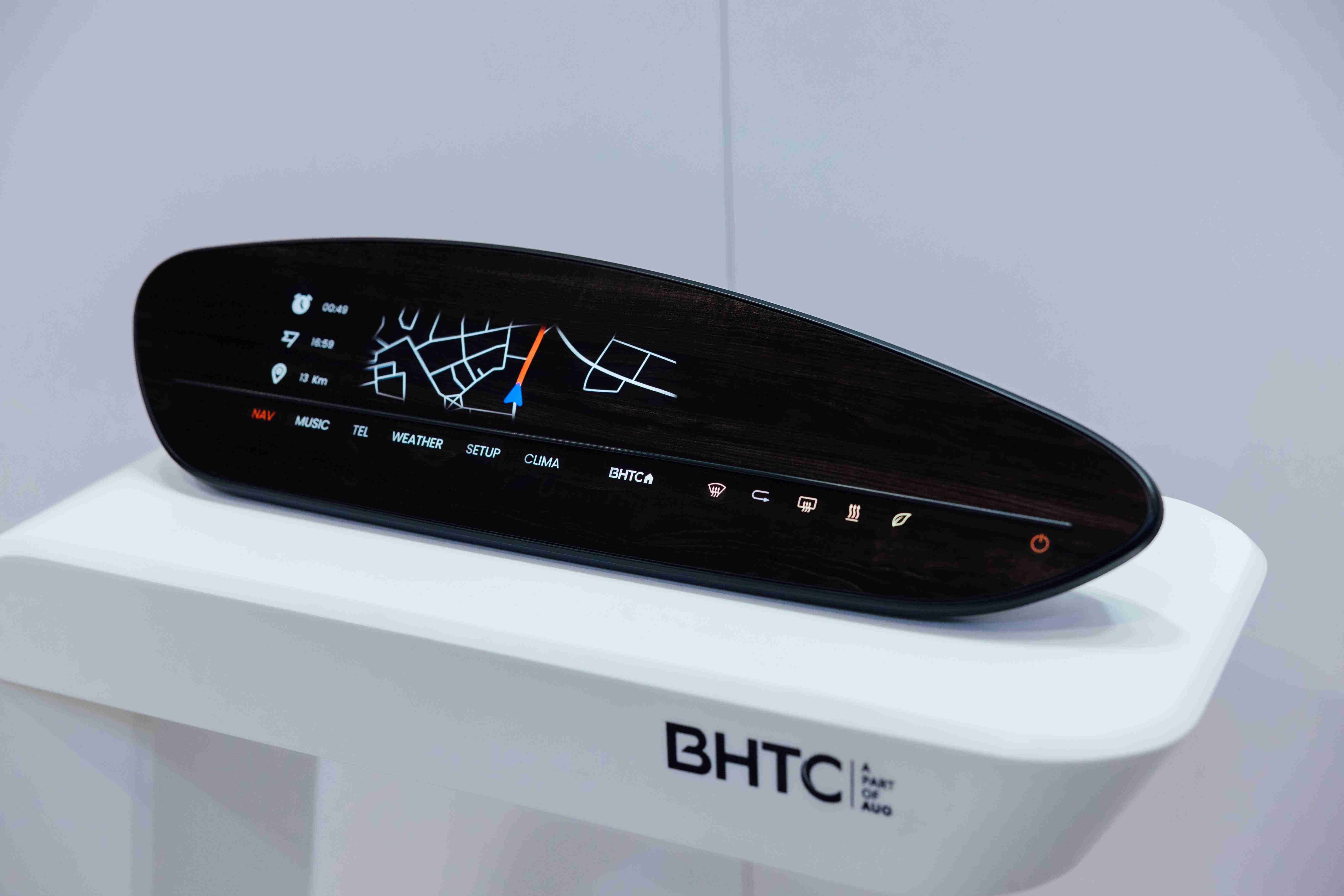 BHTC的木纹车用显示器(Display Behind Wood)将无缝木质表面与显示器结合后,,,可以融入车内设计中,,,,提供驾驶优质的视觉效果,,加上其无边框的设计和亮度调控,,,,创造更优质的车内体验。。。