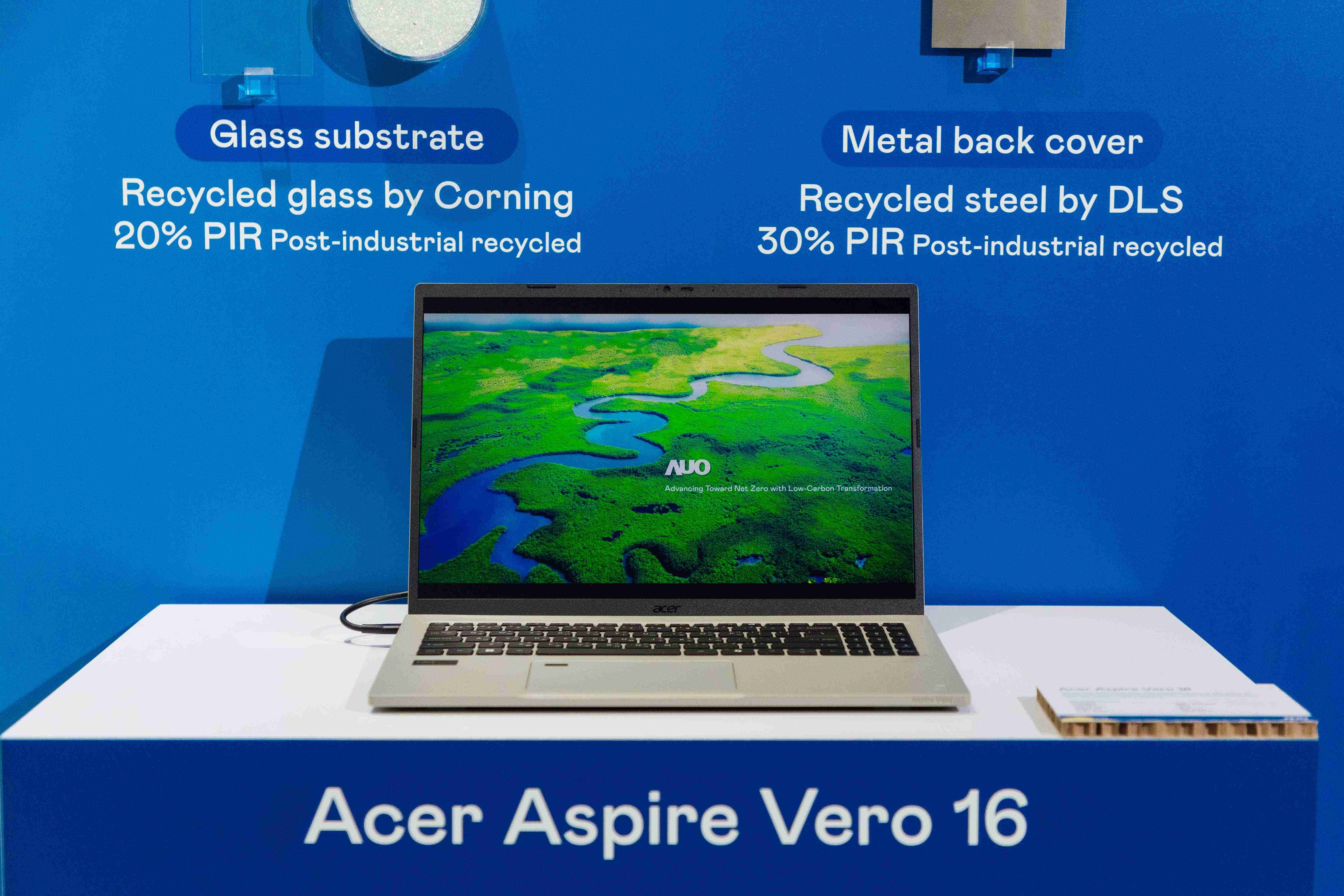 全球首款笔记型电脑采用2468BET100%绿电制造的面板,,,结合PCR外亦使用工业后回收材料(PIR),,,例如回收玻璃和金属,,,,减少对环境的影响。。